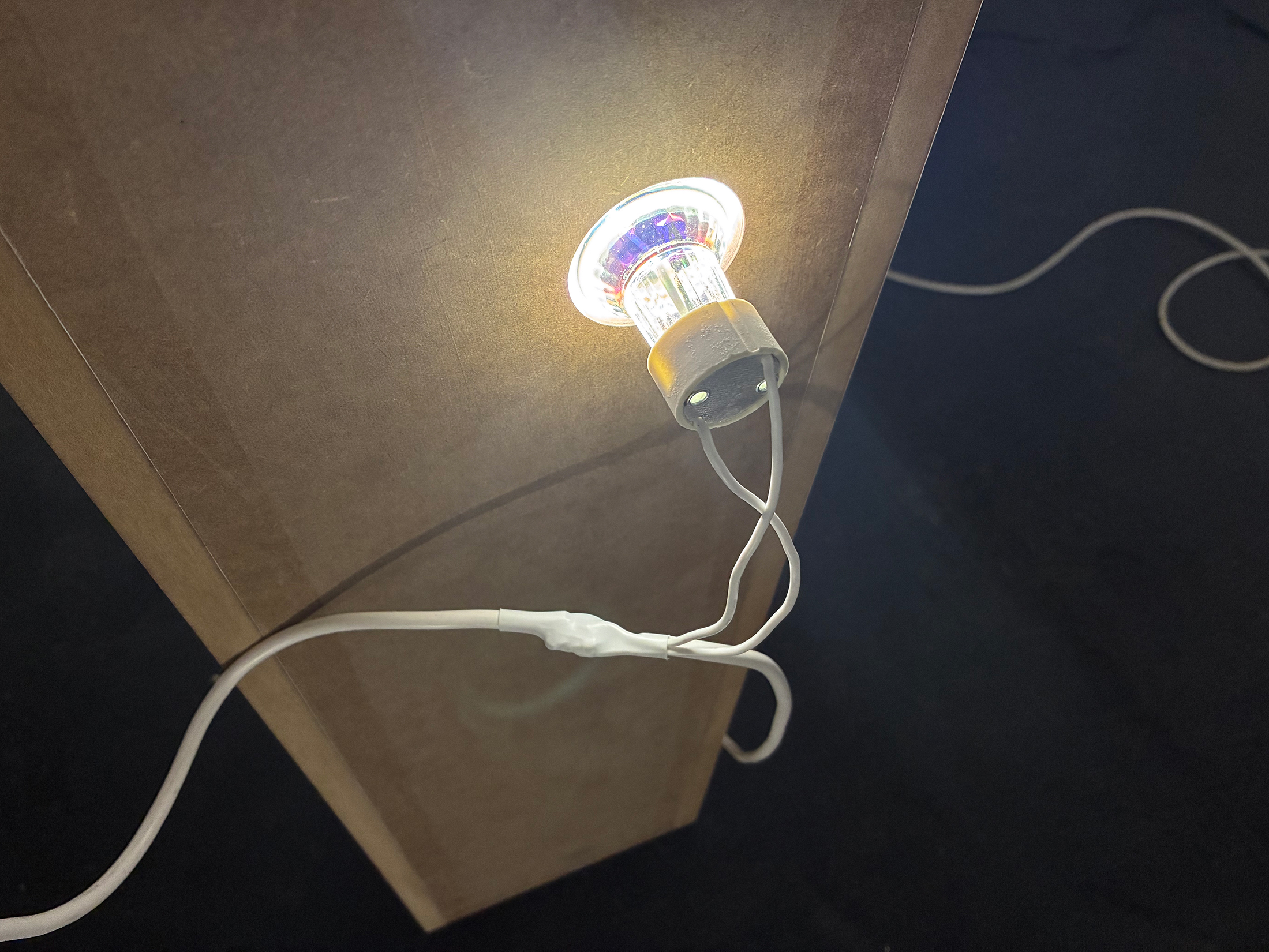 GU10 spots, cable, MDF, paper,